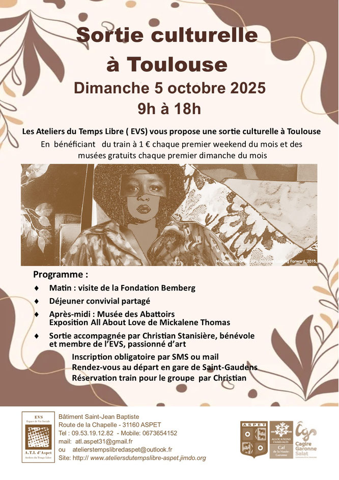 Inscription préalable auprès de Taila / EVS Les Ateliers du Temps Libre Tel : 0673654152
