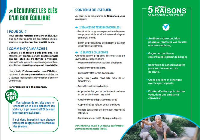 L’objectif principal est d’optimiser l’équilibre, renforcer la confiance en soi, et redécouvrir le plaisir d’une activité physique régulière. Ce stage est financé par les caisses de retraite (CARSAT, MSA) avec le concours de la CNSA,